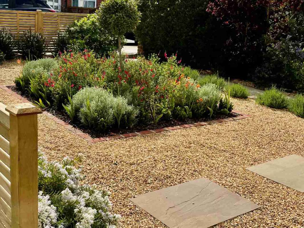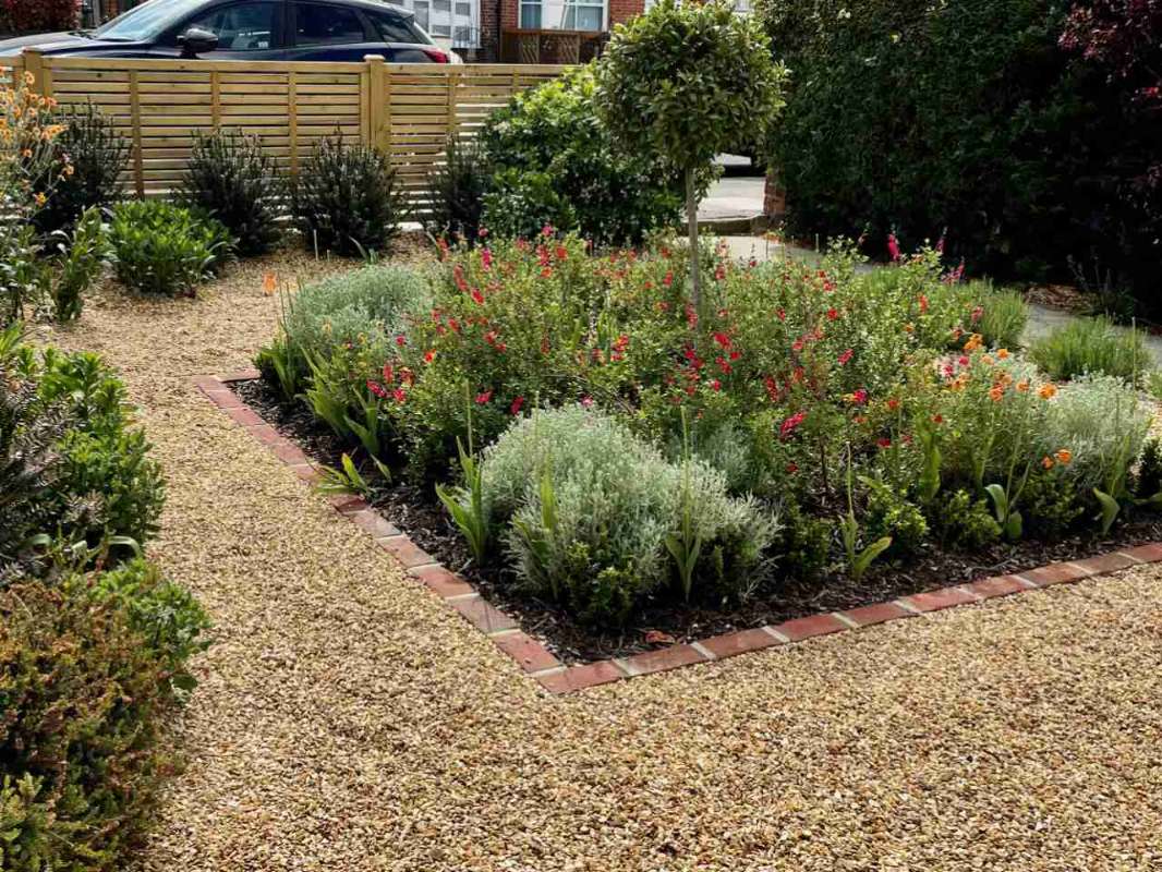 The brief was for a front gravel garden with vibrant and colourful scheme.